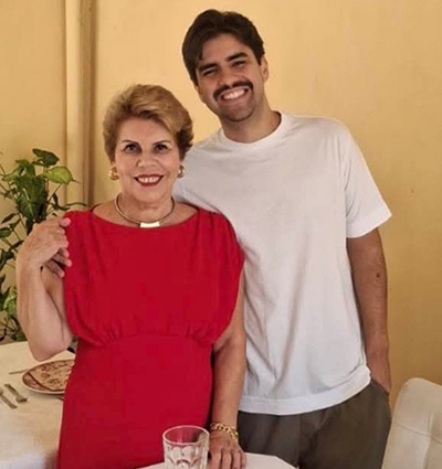 Tarde de churrasco com a aniversariante, Luzmar Von Rondow e o neto primogênito, Gabriel Delanne.
